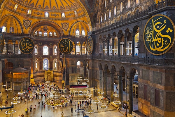 Next, visit the Sultanahmet Imperial Mosque, also known as the Blue Mosque. See the intricate blue tiles that adorn its interior and learn about its importance as a revered place of worship.