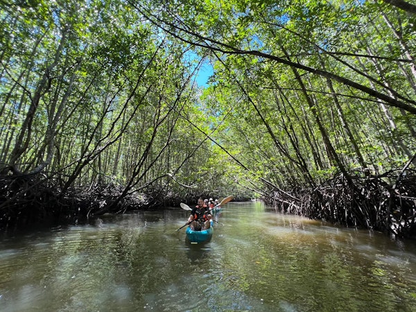 This daring adventure takes you through a limestone cave and narrow canyons, both impressive and fascinating. Navigate through the emerald mangrove forest, explore the Crocodile Cave, and witness the peaceful Lagoon. This opportunity allows you to spot birds, monkeys, and other wildlife in their natural habitat.