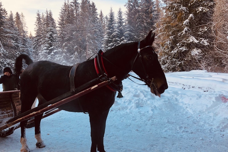 In the afternoon, ride a sleigh in one of the valleys. After the one-hour ride, enjoy a bonfire with warm pork sausages, smoked cheese called "oscypek," and Highlander's tea with a kick. If there's not enough snow, the sleigh ride will be changed to a horse cart ride.