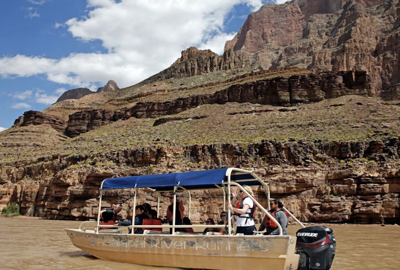 Upgrade to a Helicopter + Pontoon boat excursion and fly to the bottom of the Grand Canyon to enjoy a 15-minute Pontoon boat ride on the Colorado River before ascending back up to the rim of the canyon.
