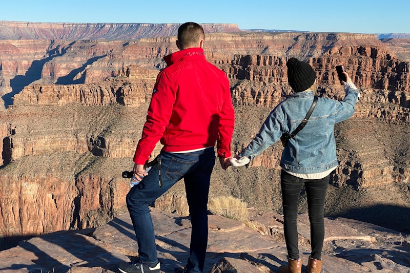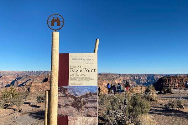 Approximately 2.5 hours later, you'll arrive at Grand Canyon West, located within the Hualapai Reservation. Explore the majestic scenery of Grand Canyon West for around three hours, and enjoy amazing cultural history and panoramic vistas at Eagle Point and Guano Point.