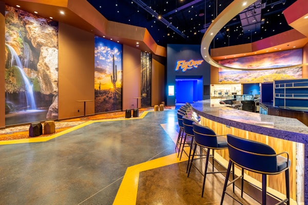 An immersive flying journey transports you over iconic global destinations!