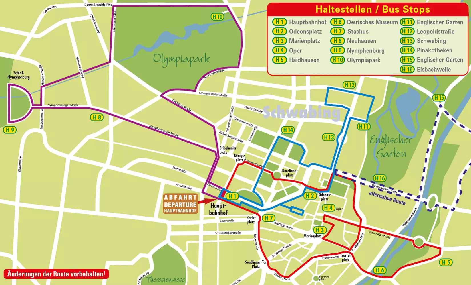 Hop aboard a vibrant red double-decker bus and discover the sightseeing wonders of Munich! With 16 convenient stops along the route, passengers have the freedom to hop on and off every 15 to 30 minutes, exploring the city's highlights at their own pace.
