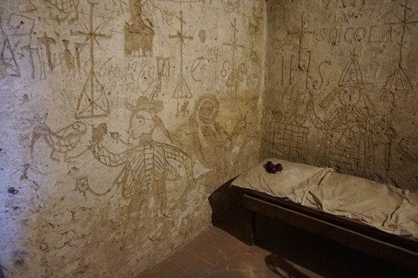 There’s also a harrowing glimpse into the past as you enter the dungeons of the Holy Office of the Inquisition that were used to combat heresy. Graffiti from the prisoners’ cell still remains, and with the help of the Vatican archives, it’s been possible to reconstruct some of their stories.