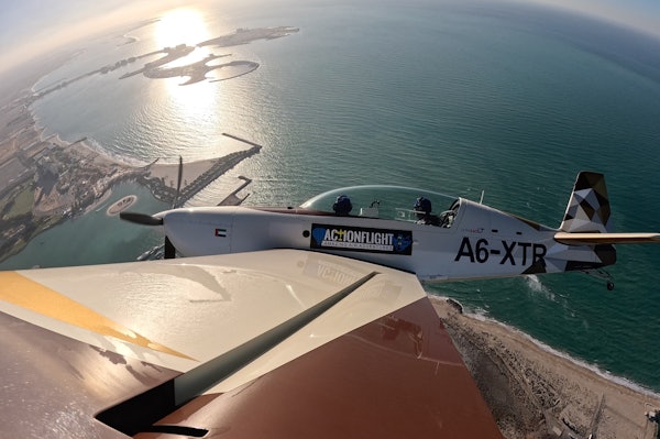 Observe views of the Ras Al-Khaimah coastline, mountains, and desert. Feel the power of a competition-grade aircraft built for advanced aerobatics.