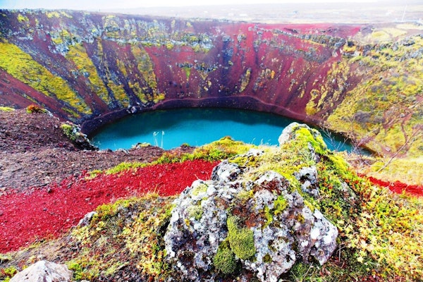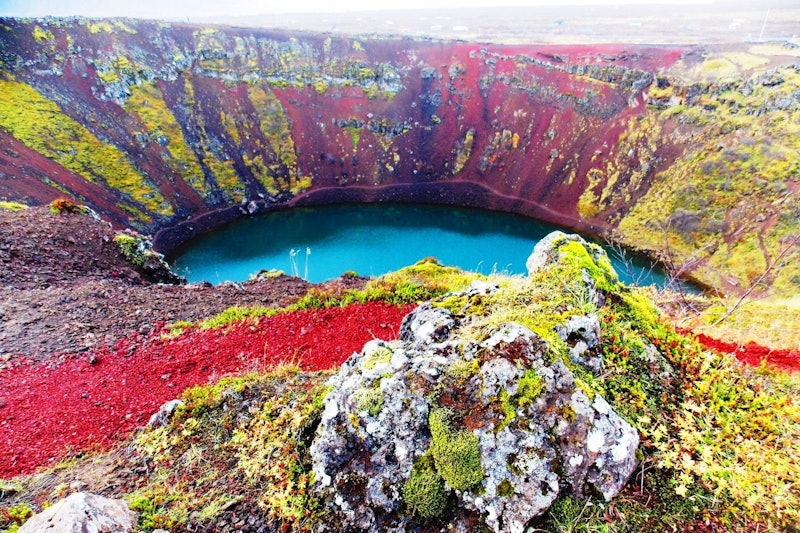 End the tour at the Kerið crater, a geological structure that is over three thousand years old.