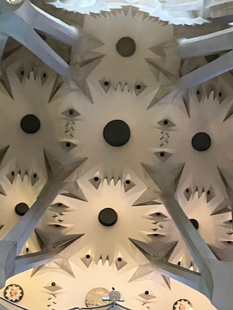 Tree canopy ceiling: Overhead, the columns bearing the weight of the basilica’s ceiling branch out like trees in a giant canopy, reminding visitors of the unfathomable scale of this holy structure.