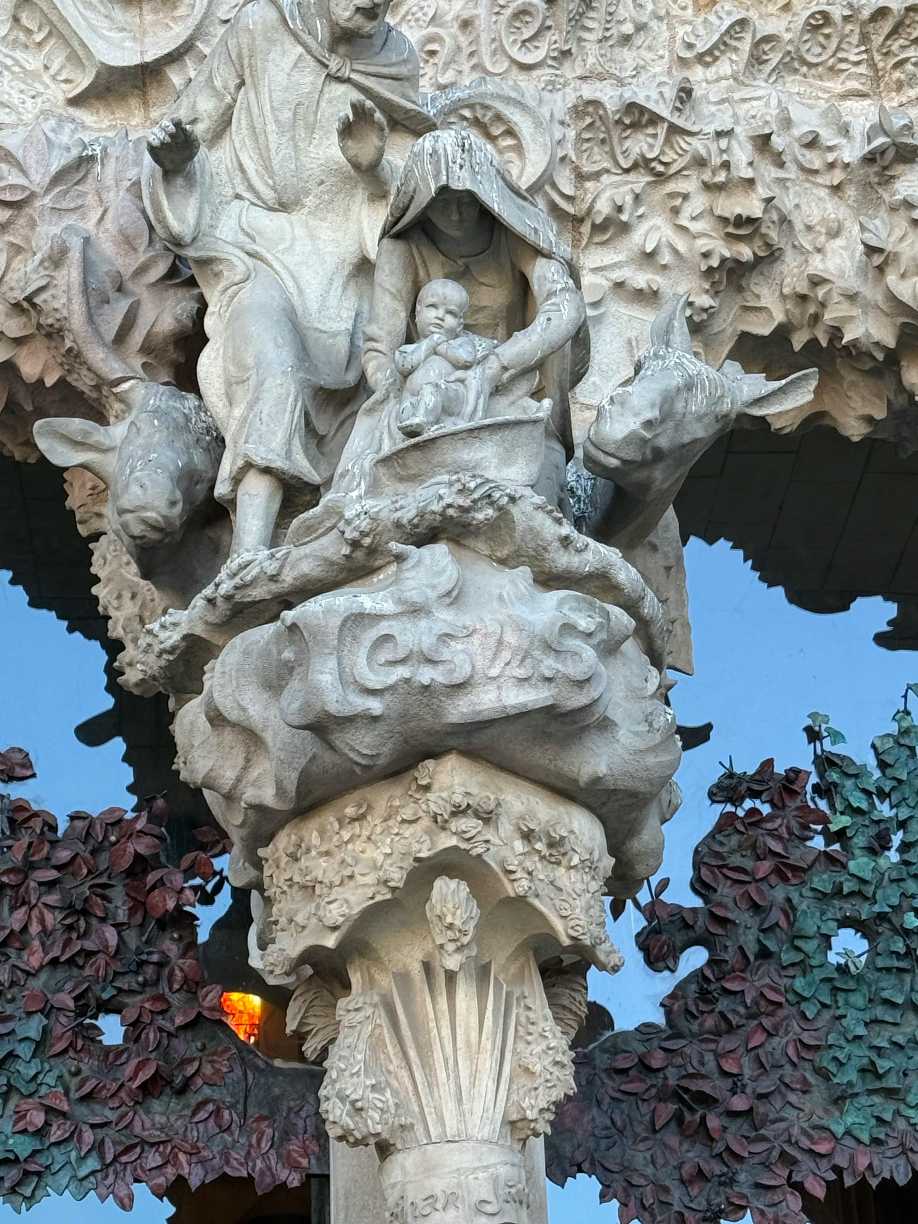 Nativity Façade: This is only one completed in Gaudí's lifetime, representing the birth of Jesus with joyful, ornate, and nature-inspired sculptures.