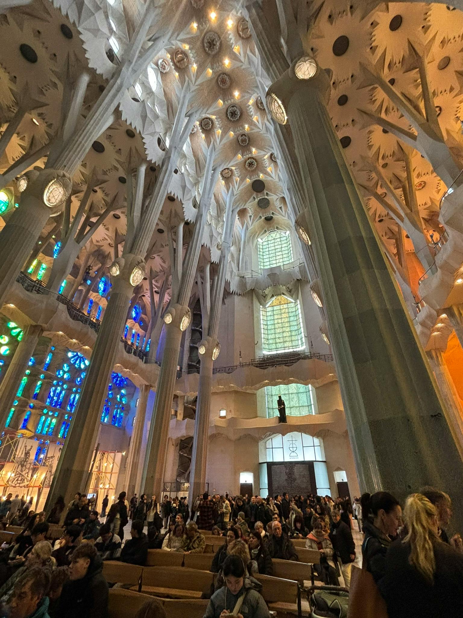 Tree canopy ceiling: Overhead, the columns bearing the weight of the basilica’s ceiling branch out like trees in a giant canopy, reminding visitors of the unfathomable scale of this holy structure.