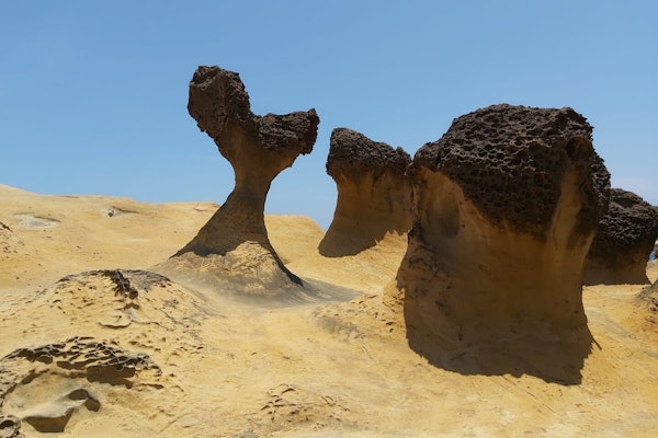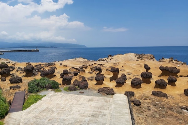 Explore Taiwan's north and northeast coast on a guided day tour from Taipei. Begin at Jiufen, once a thriving mining village, now a charming spot with winding alleys. Visit Yehliu Geopark to marvel at its stunning coastal erosion features.