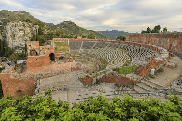 The theater boasts stellar views of the Calabrian coast and the Ionian coast of Sicily. You can see Mount Etna on a clear day, a view that hasn't changed in over 2,300 years. Revel in your self-guided tour and transport yourself back to ancient times at this historic jewel of Sicily.