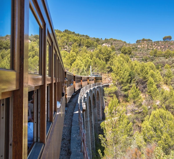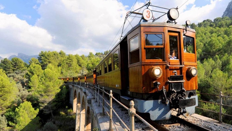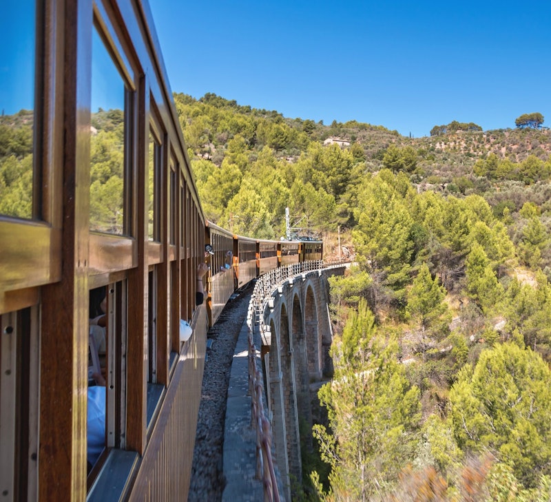 See olive groves and orange trees, pass the natural barriers of the Alfábia Mountains, chug through 13 tunnels, and cross several bridges and a famous viaduct. Reaching the city of Palma is a real old-school adventure.