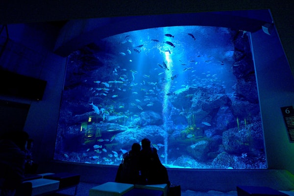 Spend your time freely in this aquarium, which feels like a park. Sit before the aquarium or chat at the cafe while observing the waters.