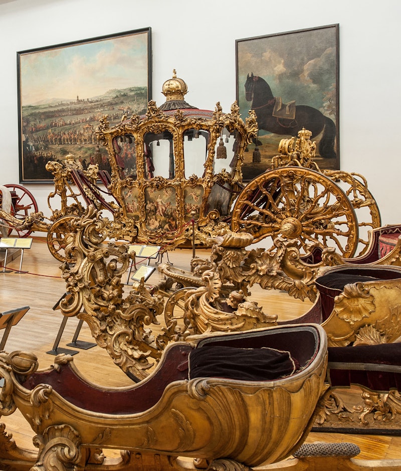 Located in the former Winter Riding School, the collection features the richly decorated Imperial Coach used at royal weddings and coronations. Another highlight is the Sisi Trail that showcases the sumptuous carriages of the beloved Elisabeth of Austria, as well as personal mementos such as her dresses and her only extant saddle.