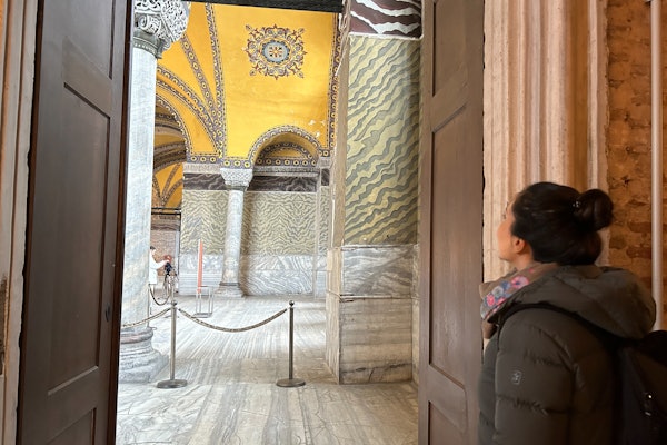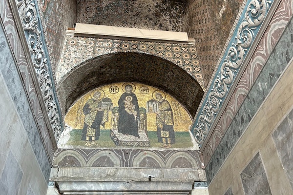 A continuación, explora Santa Sofía. Conoce sus azulejos İznik, el mosaico de la Virgen María y la tradición de enterrar a los sultanes en su patio.