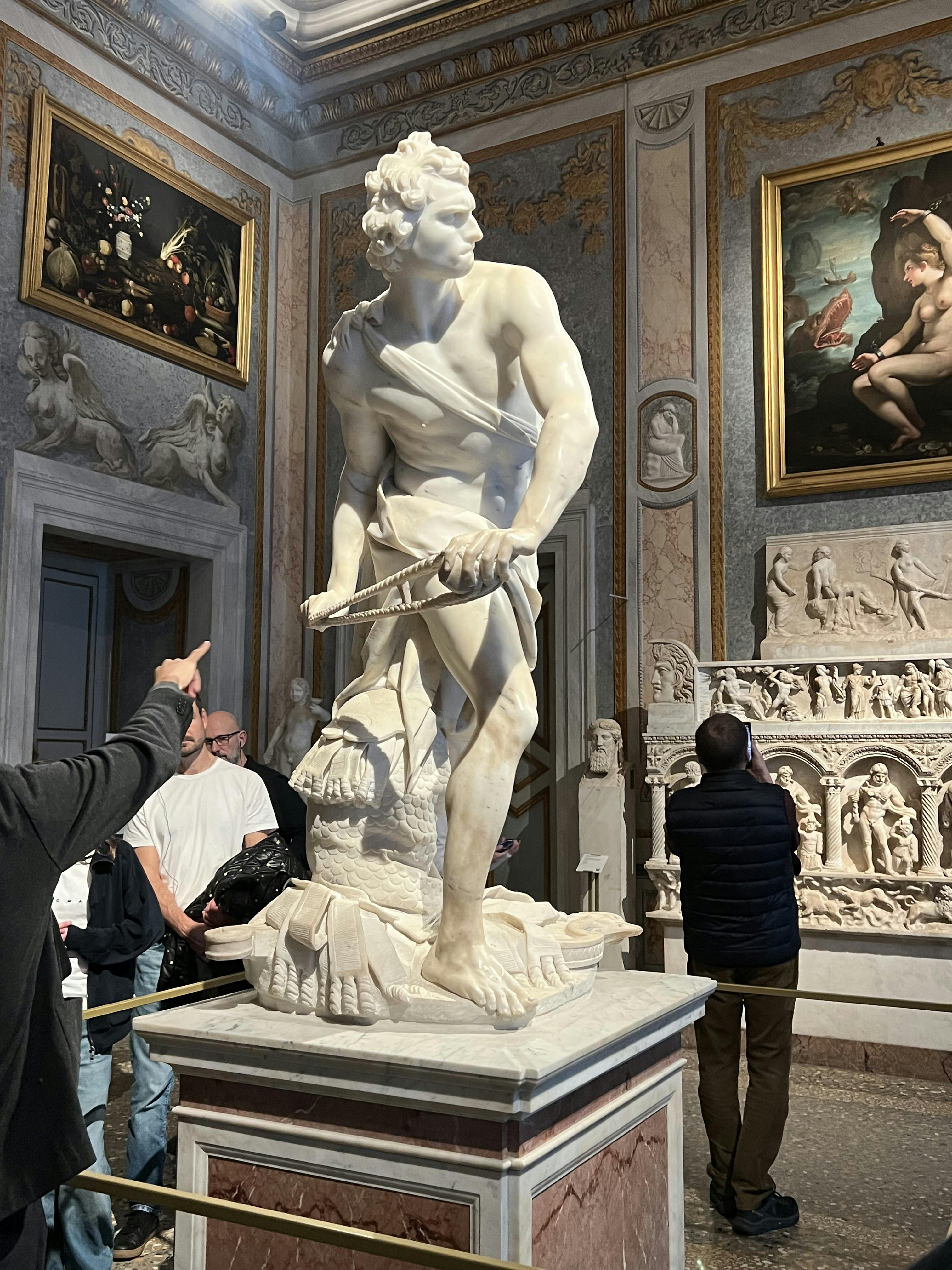 Entre las más prestigiosas del mundo, la colección de esculturas de la Galería Borghese incluye algunas de las mejores obras de Gian Lorenzo Bernini, como Dos bustos del cardenal Scipione Borghese, La estatua de David, Marco Curcio arrojándose a la sima, La estatua del Hermafrodito dormido y muchas más.