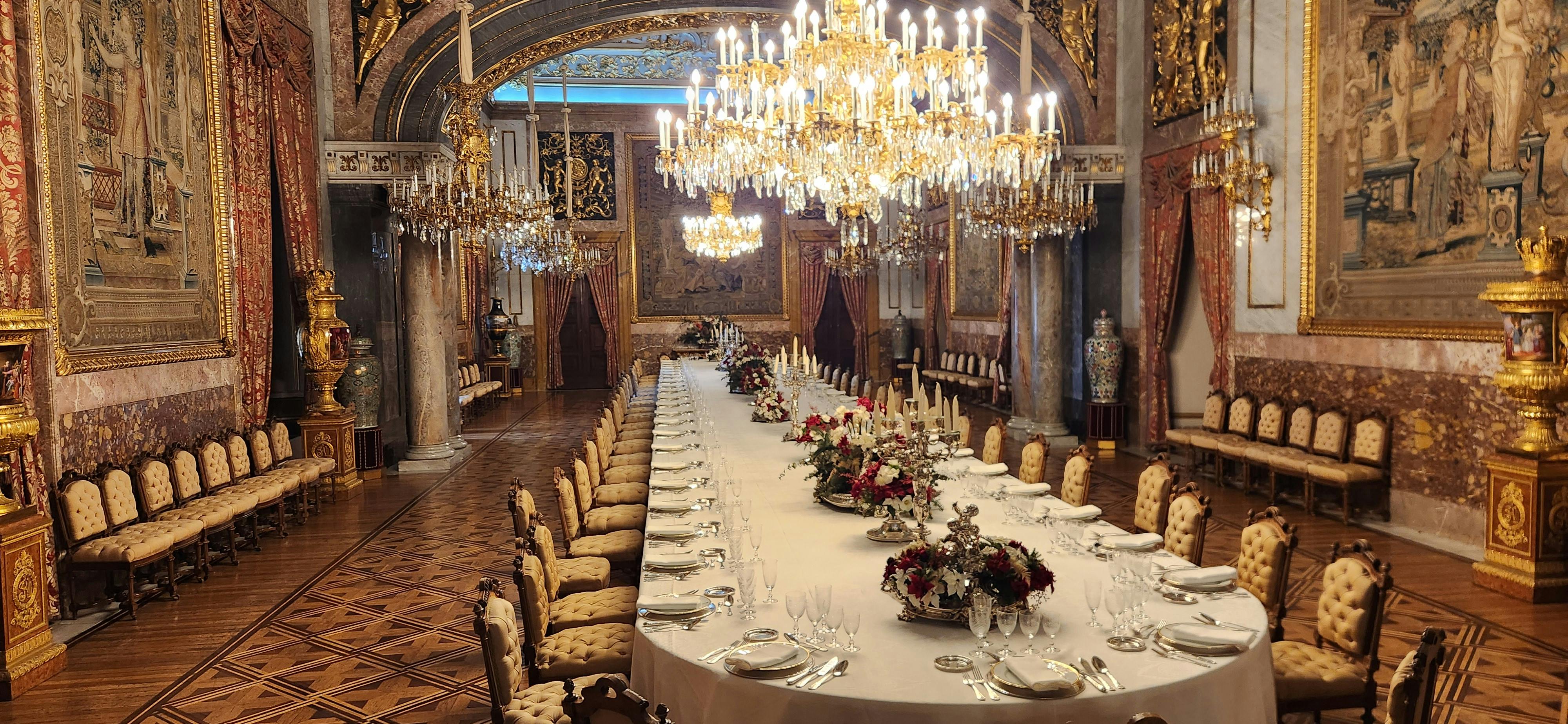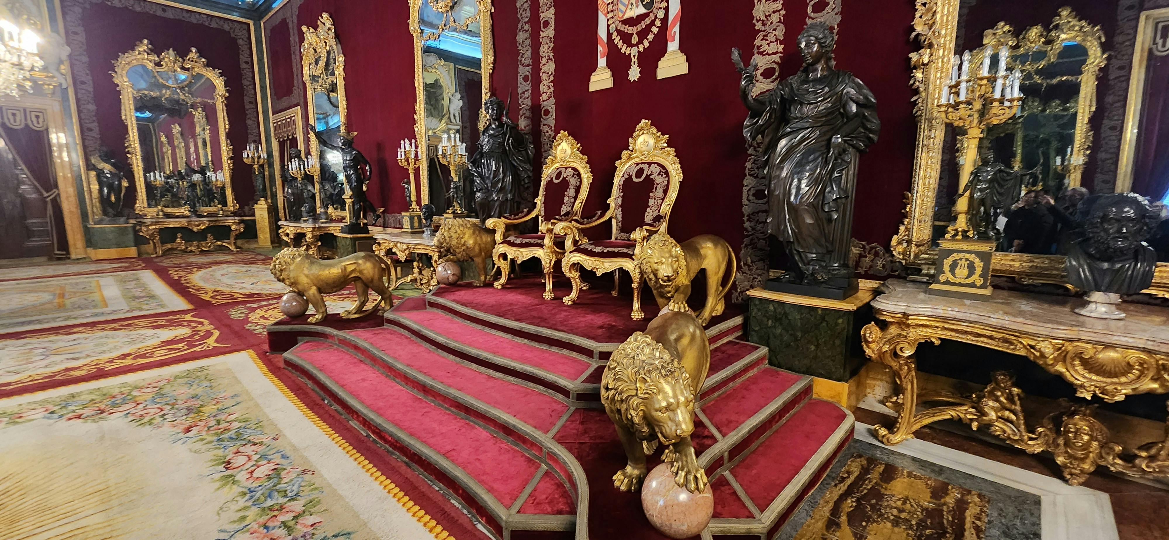 Siéntete como un miembro de la realeza mientras recorres el Salón del Trono, los Salones Oficiales, las Armerías Reales, la Sala de Alabarderos, la Galería de Pinturas e incluso la cocina