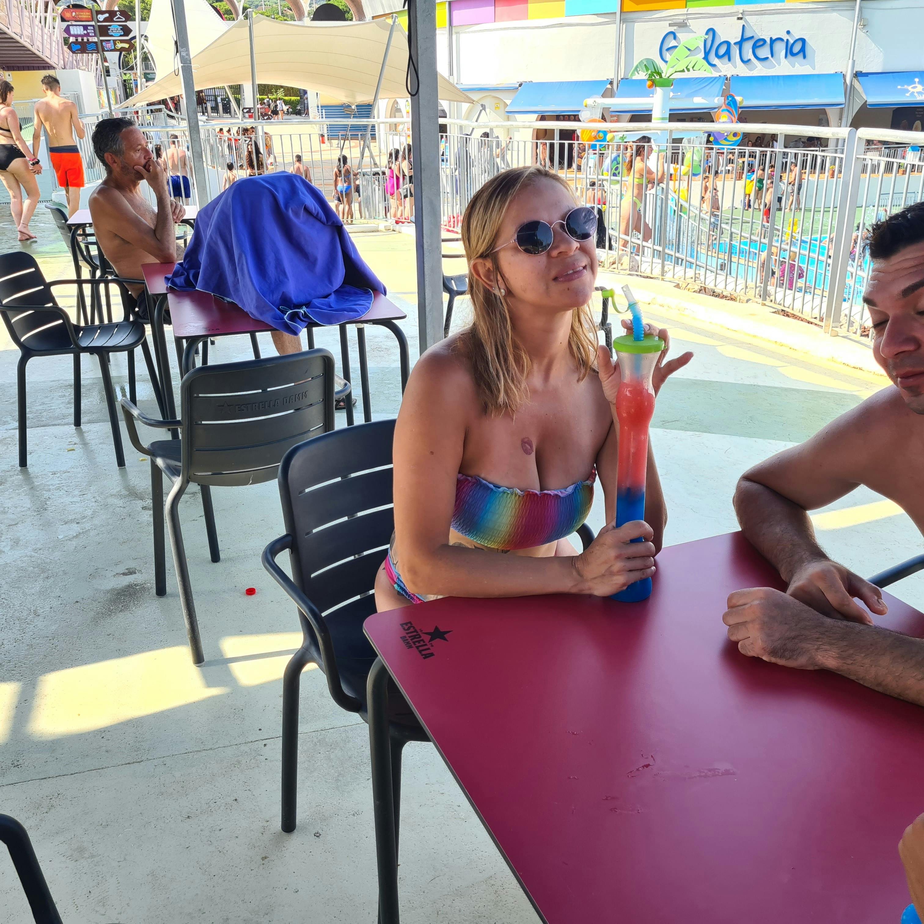 La zona de pícnic del parque acuático Illa Fantasia cuenta con 900 mesas y barbacoas, así que puedes llevar tu propia comida y disfrutarla a la sombra. Como alternativa, tienes varios lugares para comprar comida rápida, bebidas y aperitivos alrededor del parque. Encontrarás restaurantes de hamburguesas, pizzas y frankfurts, una heladería y una cafetería. ¿A alguien le apetece un helado?