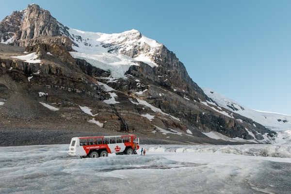 Recorre los glaciares a través del Explorador de Hielo, y luego camina por el puente aéreo con fondo de cristal