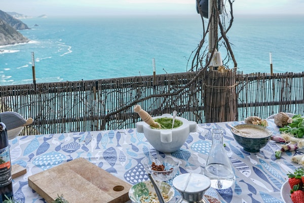 ¡Prepárate para la aventura gastronómica de tu vida! Imagínatelo: impresionantes vistas del mar, el tentador aroma de la albahaca fresca en el aire y la expectación de una próxima clase de cocina. El viaje comienza con una cautivadora historia sobre los humildes orígenes del pesto en Spezia.