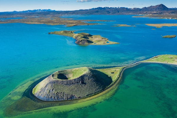 Explorez la région de Mývatn, au nord de l'Islande, connue pour ses merveilles géologiques et la beauté de ses paysages. Visitez le lac Mývatn, un paradis pour les oiseaux et les poissons. Marchez à travers les formations de lave de Dimmuborgir, les pseudo-cratères de Skútustaðir et la zone géothermique de Námaskarð.