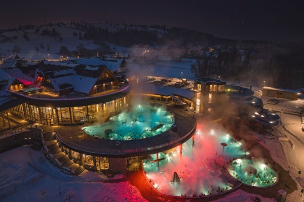 Passez du temps dans les piscines thermales de Chochołów avec vue sur les montagnes. Profitez d'une prise en charge à l'hôtel, d'un guide anglophone et de rafraîchissements à bord pour une excursion à travers les principaux sites touristiques de Zakopane.