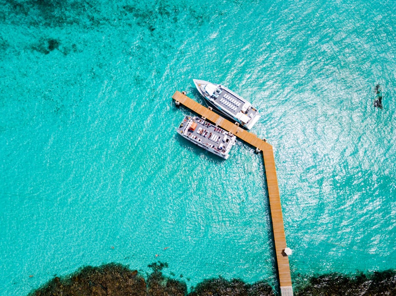 Montez à bord du ferry depuis la jetée de Marina Aquatours à Playa Tortugas et préparez-vous pour une journée d'aventure au parc naturel récifal de Garrafon sur Isla Mujeres, à seulement 13 kilomètres de Cancún.