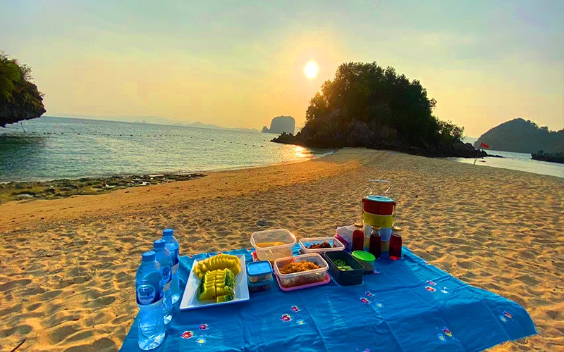 Prenez des photos depuis le célèbre point de vue de Koh Hong : c'est à seulement 419 marches du magnifique coucher de soleil ! Vous naviguerez également vers Lading Island pour découvrir le paradis avant un délicieux dîner barbecue sur l'île de Pak Bia. Lorsque le crépuscule frappe, si la lune est de bonne humeur, le plancton bio-luminescent rend l'océan plein d'étoiles !