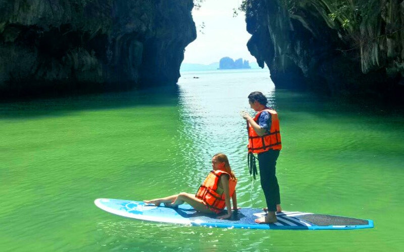 Cette visite de l'île de Hong vous emmène de Krabi à Koh Hong Lagoon à bord d'un bateau traditionnel. Prenez un bain de soleil sur le sable blanc ou explorez l'eau ! La lagune est riche en coraux, ce qui en fait un paradis pour le snorkeling. Envie de découvrir l'eau sans vous mouiller ? Optez pour un stand-up paddle !
