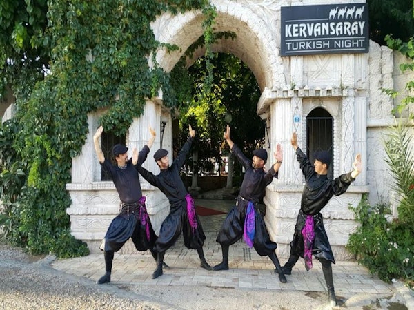 Vivez une soirée riche en délices orientaux dans la ville côtière de Marmaris. Battez la mesure au rythme de la musique, admirez les danseuses du ventre traditionnelles, les derviches tourneurs et les danseurs folkloriques qui tourbillonnent dans leurs costumes colorés dans une cour sous un ciel étoilé. Savourez un buffet de cuisine turque, avec une sélection de meze et de poulet grillé, et sirotez de la bière, du vin et des boissons non alcoolisées à volonté !