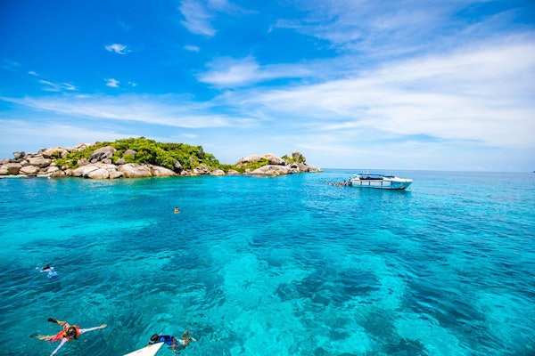 Commencez un voyage aquatique avec une aventure de plongée en apnée dans les îles Similan au départ de Phuket. L'excursion commence par une prise en charge à l'hôtel et un trajet jusqu'à l'embarcadère de Khao Lak. Après un petit-déjeuner léger et un briefing sur la sécurité, vous naviguerez vers la mer d'Andaman.