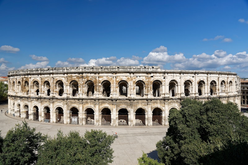 Le long du chemin, vous serez accueilli par une série de structures romaines étonnantes, dont les célèbres Arènes de Nîmes, qui datent du 1er siècle après J.-C. Ce magnifique amphithéâtre est l'un des exemples les mieux préservés de l'architecture romaine dans le monde. Ce magnifique amphithéâtre est l'un des exemples les mieux conservés de l'architecture romaine dans le monde, et c'est un spectacle vraiment impressionnant à voir. L'arène est si bien conservée qu'elle est encore utilisée aujourd'hui pour des concerts et des événements, ce qui en fait un élément vivant de l'histoire.