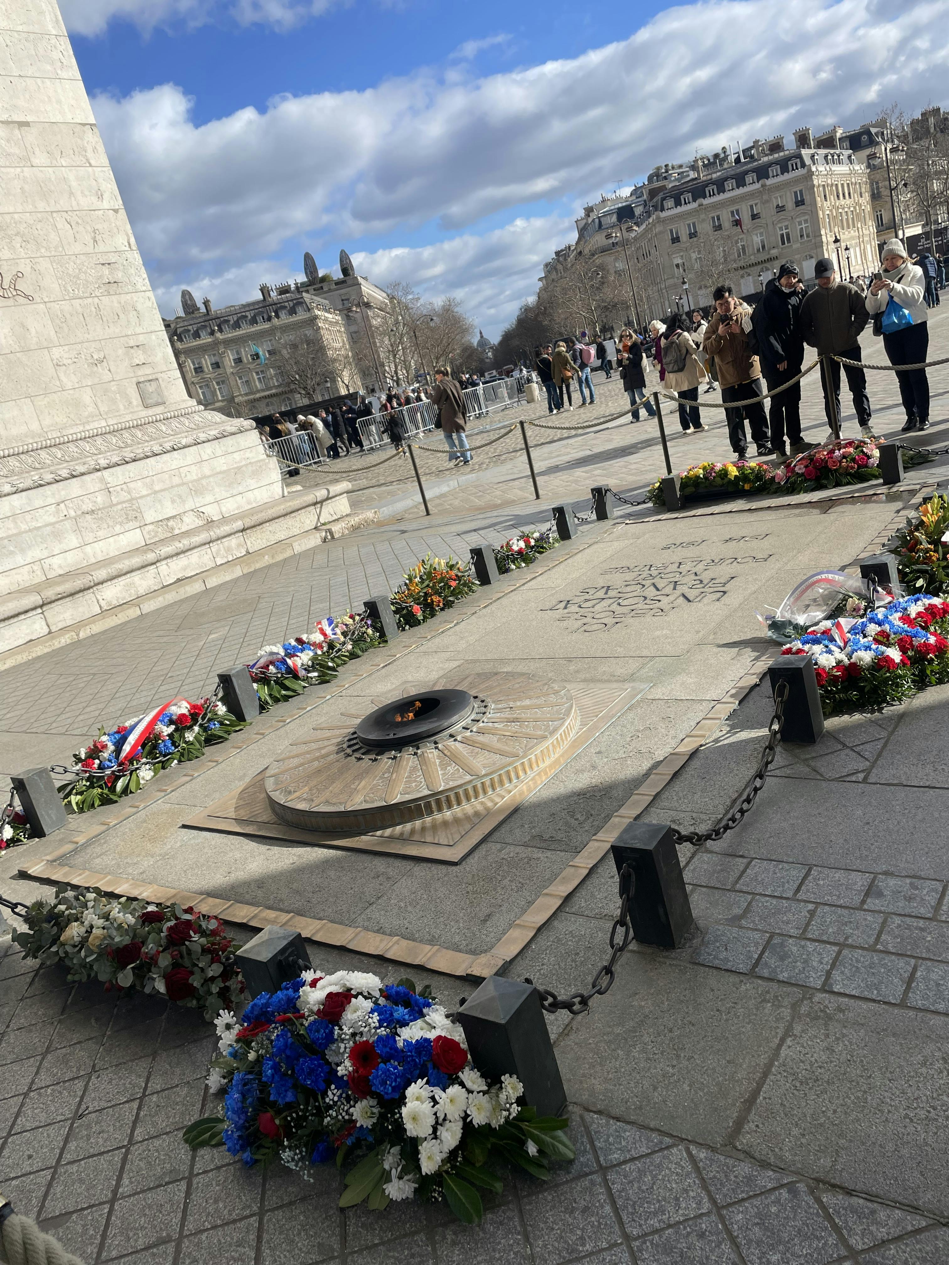 Au pied de l'arc, la Tombe du Soldat Inconnu est rallumée chaque soir à 18h30 (6h30 pm).