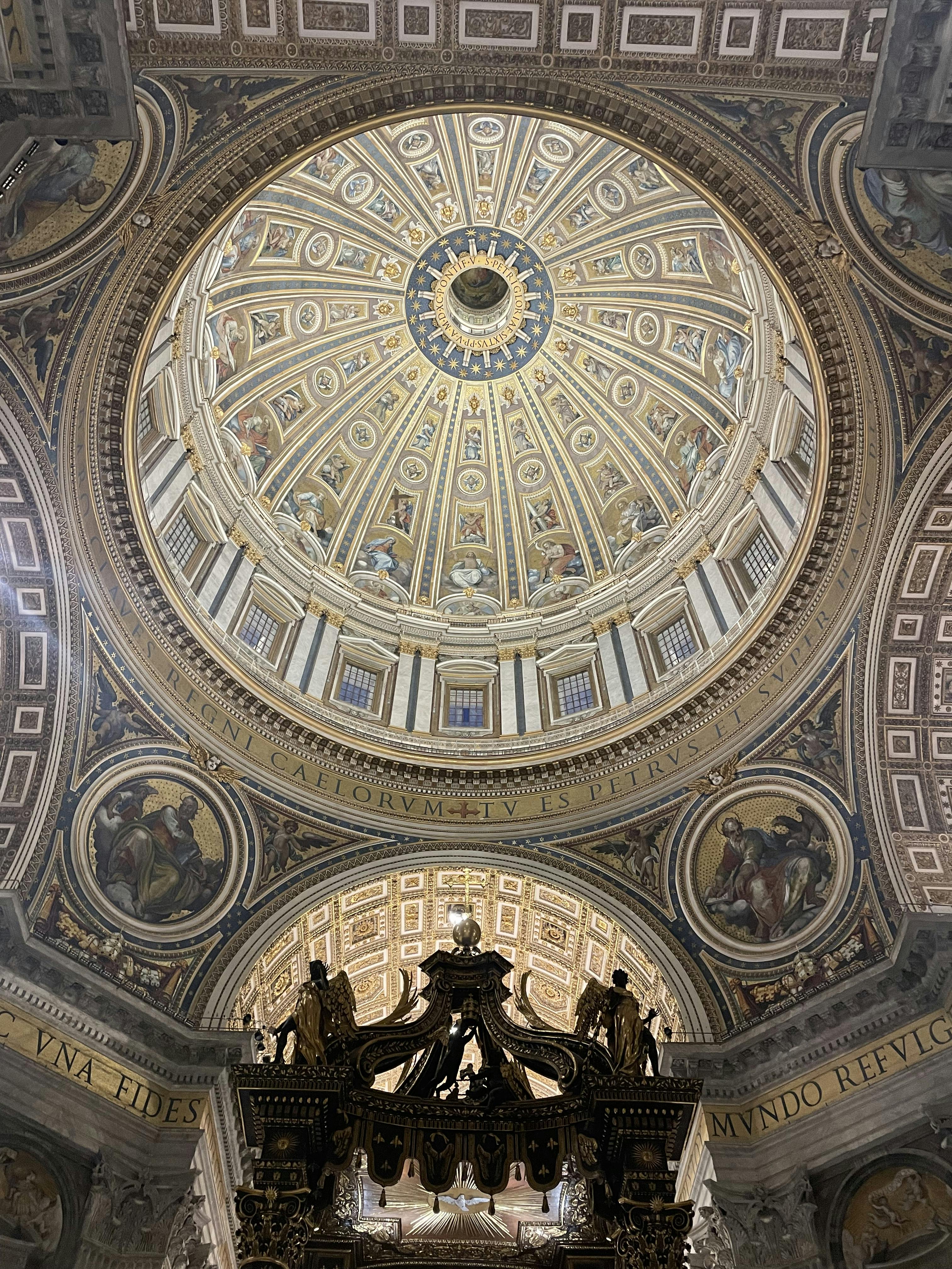 Le Baldacchino se trouve directement au-dessus du tombeau de Saint-Pierre, reliant ainsi l'église actuelle à ses anciennes racines. Sa taille imposante et son design complexe dominent l'espace central et attirent le regard vers le haut.