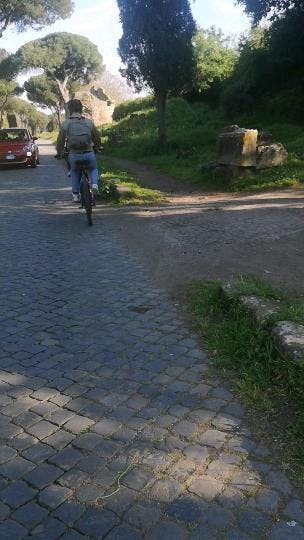 ballade en VTT électrique très agréable sur la Via Appia, puis sur des pistes et même sentiers entre les aqueducs. Manfredi, accompagnateur guide érudit, a partagé avec nous en français tout son savoir historique sur les lieux traversés. La visite de la carrière souterraine ( au choix avec les catacombes )est intéressante.