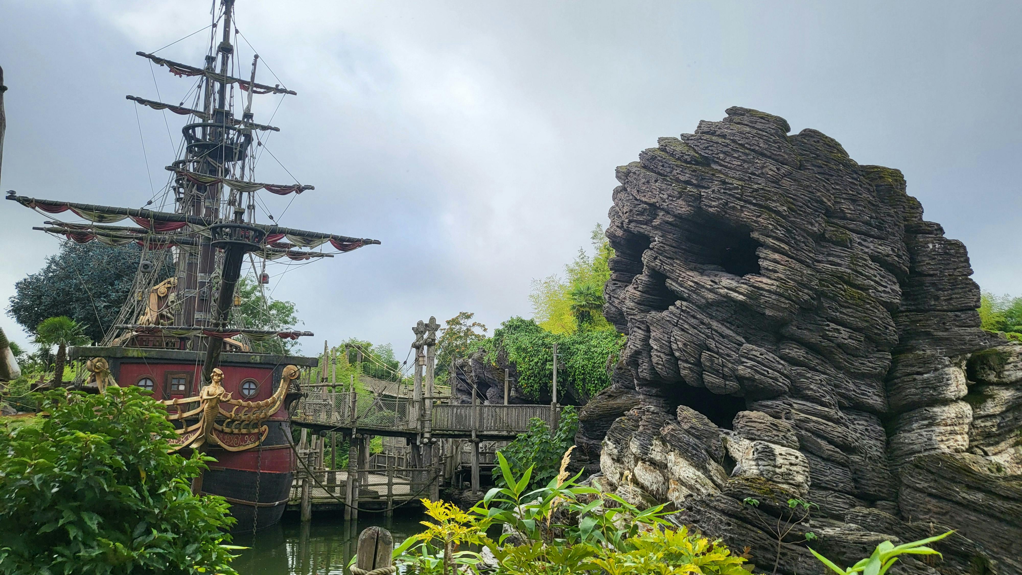 - Pirates des Caraïbes : une promenade en bateau à travers des scènes de pirates, des forts et des décors tropicaux.