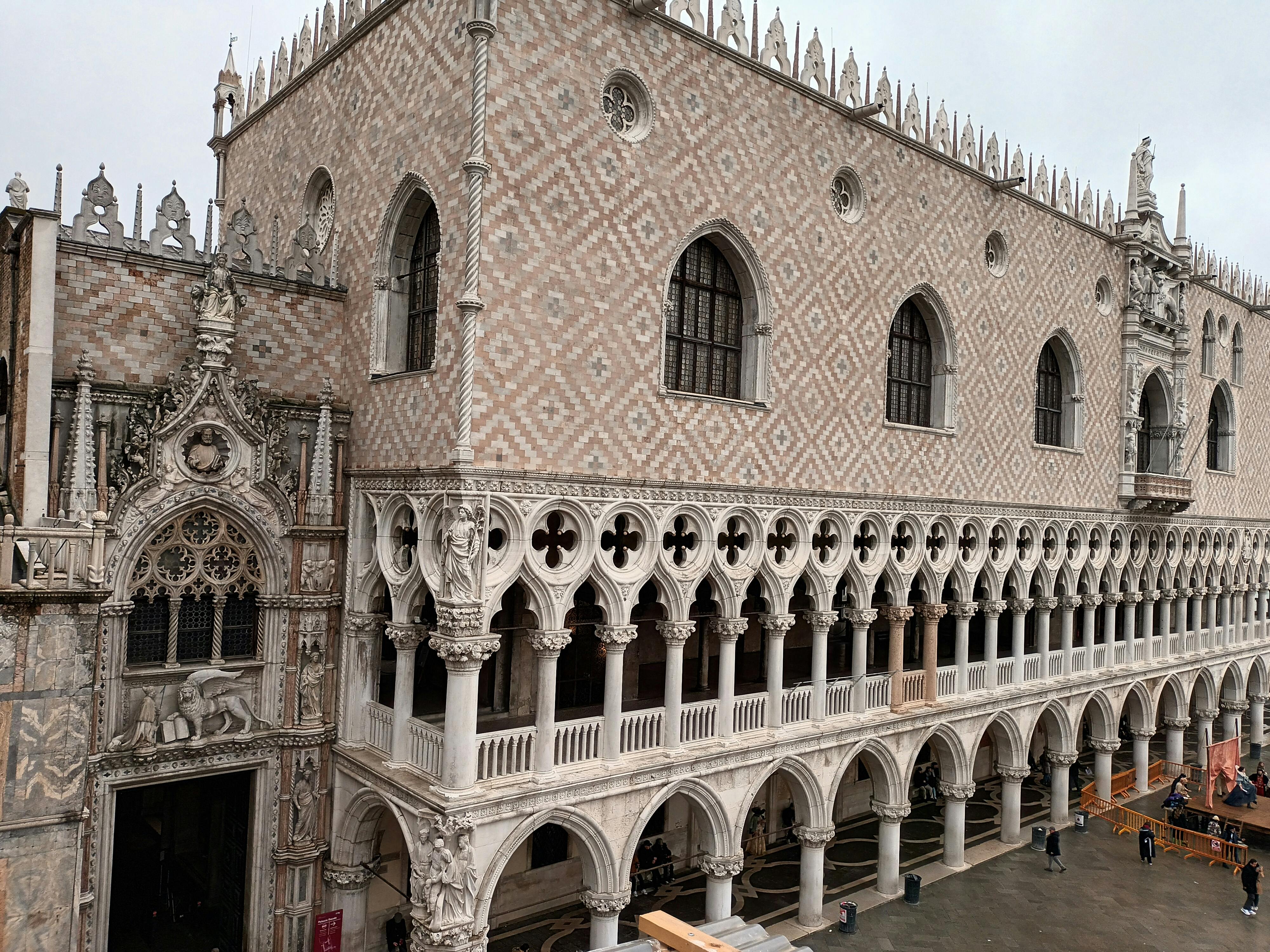 Les magnifiques arcs, colonnes et décorations ornementales de la façade font du palais des Doges un exemple éblouissant de l'architecture gothique vénitienne.