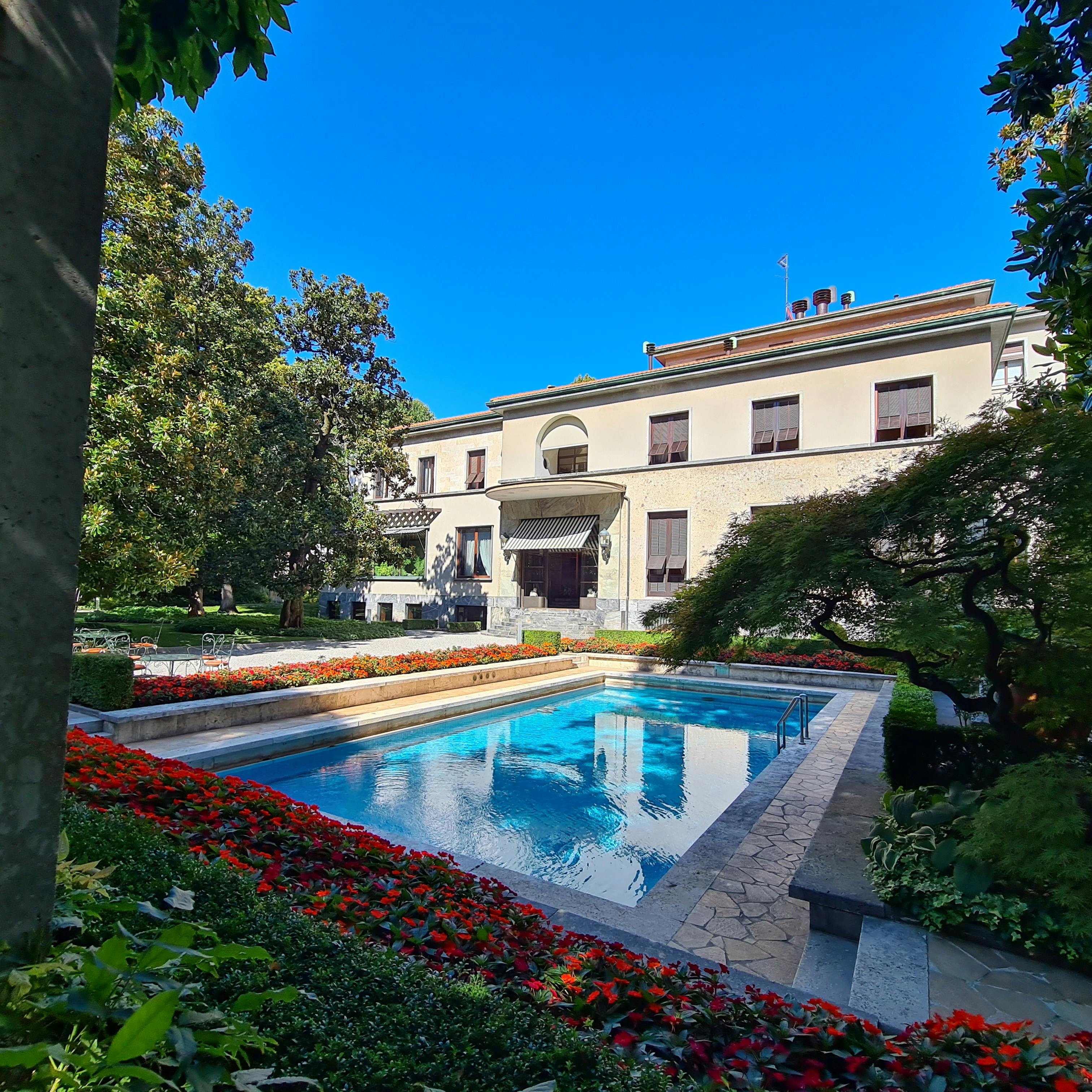 Cette maison unifamiliale glamour a été conçue avec un luxe somptueux, notamment une piscine chauffée - l'une des premières piscines privées en Italie. Même selon les normes modernes, le marbre et le satin utilisés pour meubler l'intérieur, ainsi que les vastes jardins de la propriété, sont extravagants.