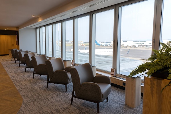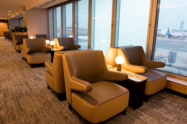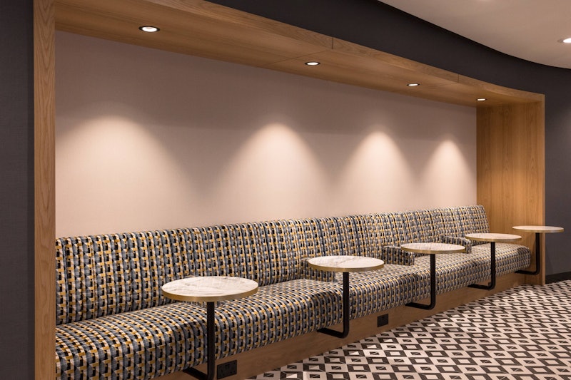 Le salon Plaza Premium du terminal 4 Departures d'Heathrow vous permet de vous détendre avant votre vol. Le salon est doté de fenêtres allant du sol au plafond, d'où vous pourrez observer le décollage et l'atterrissage des avions. Conçu en s'inspirant de l'architecture londonienne, l'espace est à la fois moderne et accueillant.