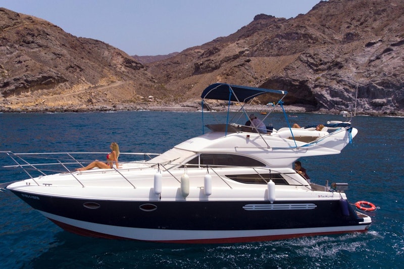 Naviguer sur le "Keeper Uno", un yacht de 14 mètres. Naviguez sur la côte sud-ouest de Gran Canaria et admirez le littoral. Choisissez parmi les différentes excursions en bateau privé.