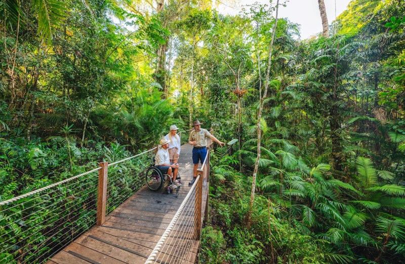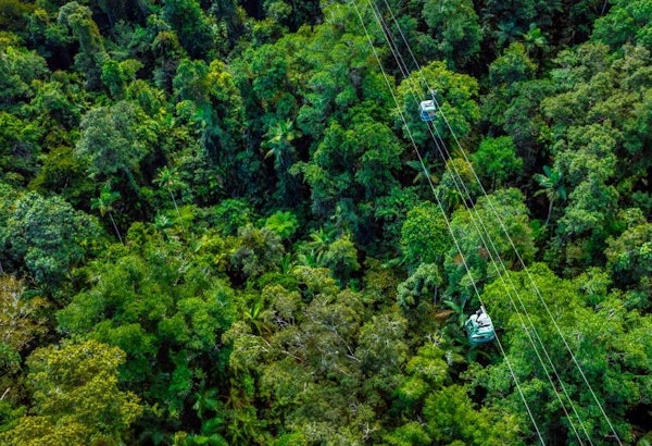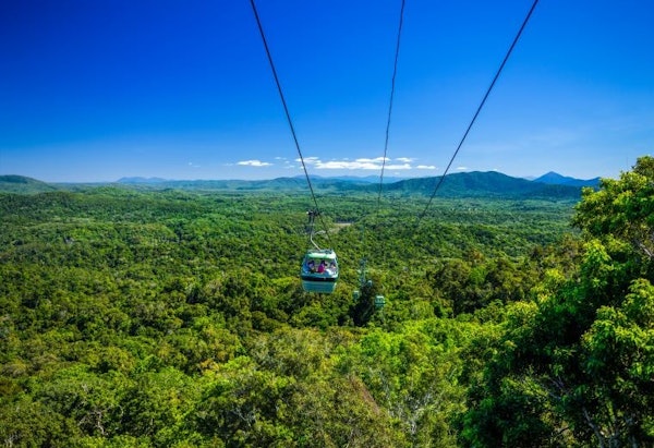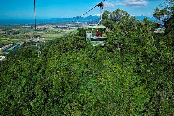 Concludete la giornata con un giro sulla Skyrail Rainforest Cableway o sulla Kuranda Scenic Railway (a seconda della scelta).