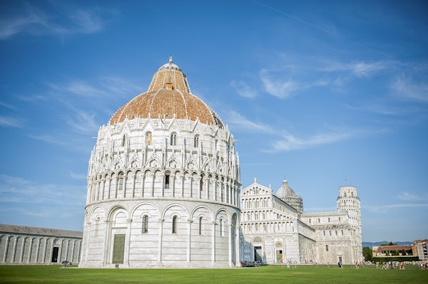 Dai un'occhiata da vicino all'iconica Torre Pendente, alla Cattedrale e al Battistero.