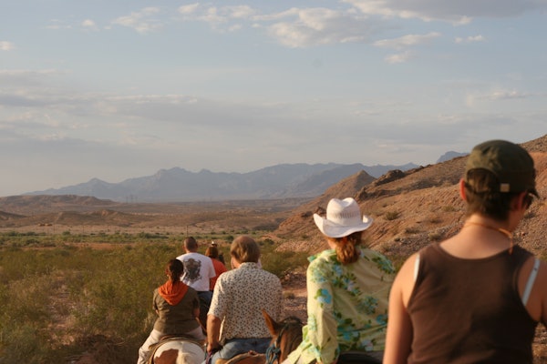 Lasciati la vita urbana della Las Vegas Strip alle spalle per ritrovarti nella polvere con il Giro a Cavallo al Tramonto Wild Wild West con Cena. Questa attività ha luogo in un ranch privato nel deserto di Moapa Valley, al confine con Valley of Fire.