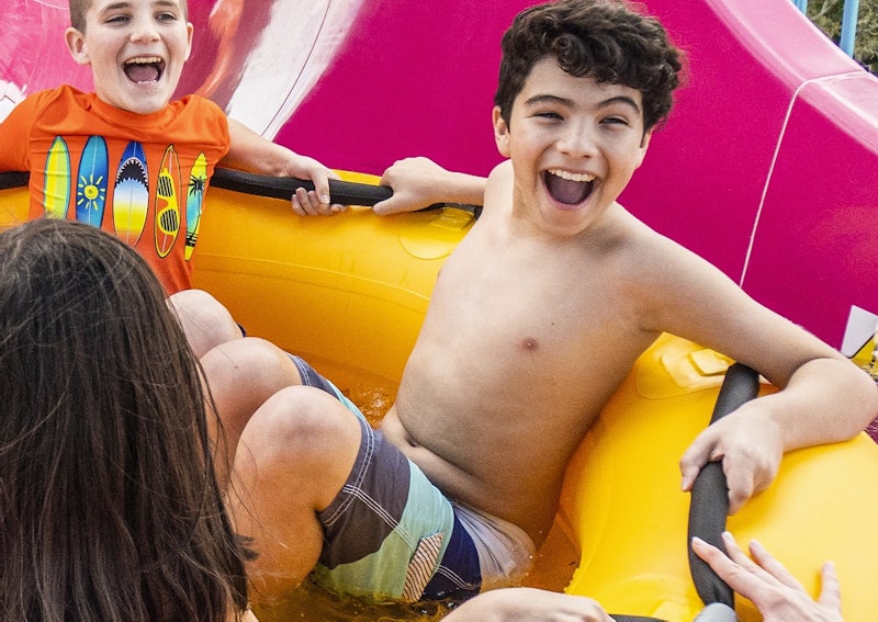 Quando è il momento di rilassarsi, scivola lungo le foreste pluviali e le cascate di Rambling Bayou™. Oppure affonda le dita dei piedi nella morbida e calda sabbia. Inoltre, al Fabian's Funport® ci sono tantissime avventure a misura di bambino, con fontane, zone di spruzzi e scivoli.