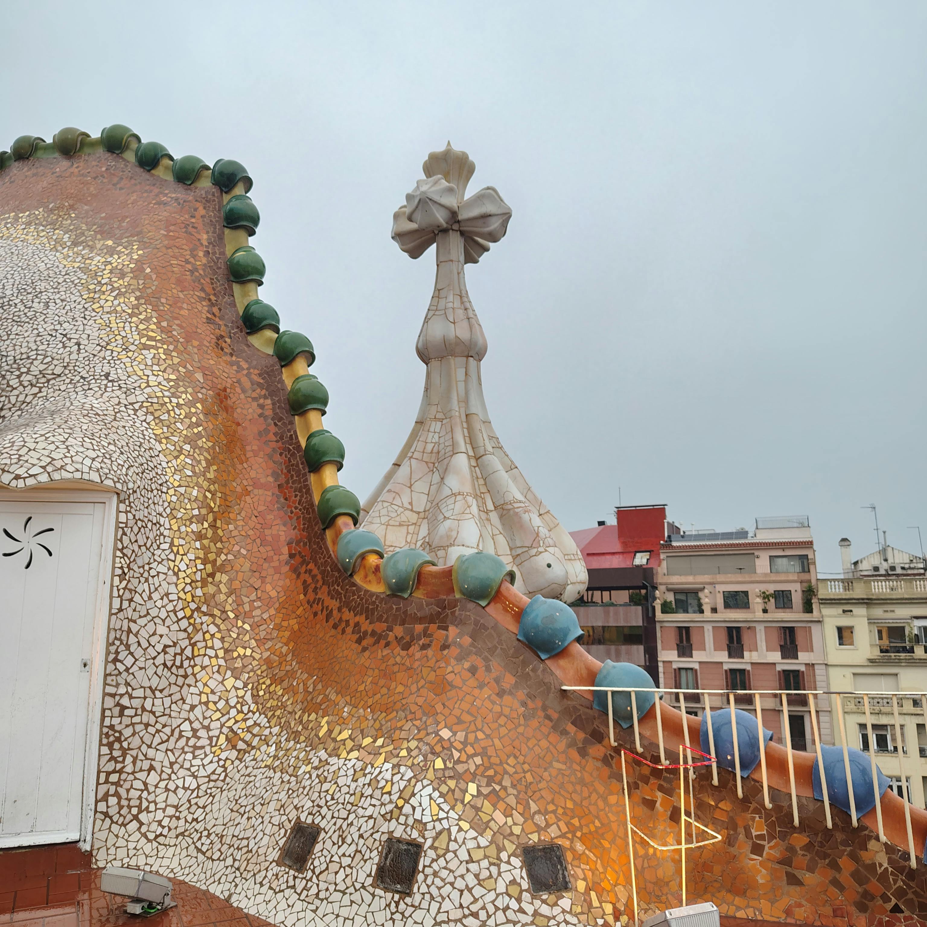 Sebbene alcuni visitatori siano delusi nello scoprire che non c'è un vero e proprio drago sputafuoco sul tetto di Casa Batlló, la maggior parte di essi rimane comunque sbalordita dal magnifico tetto di piastrelle di ceramica che ricorda le squame di una gigantesca bestia mitologica.
