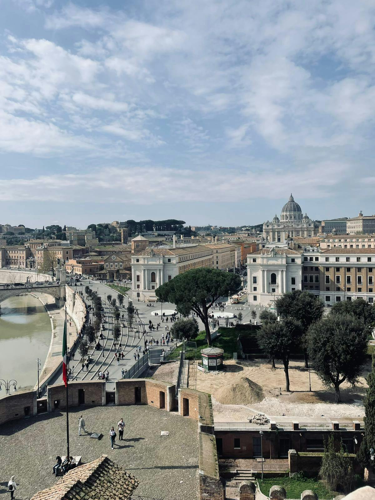 Oltre ai suoi molteplici scopi nel corso degli anni, Castel Sant'Angelo continua a sorvegliare costantemente il Ponte degli Angeli, che collega il confine di Roma alla Città Santa del Vaticano.