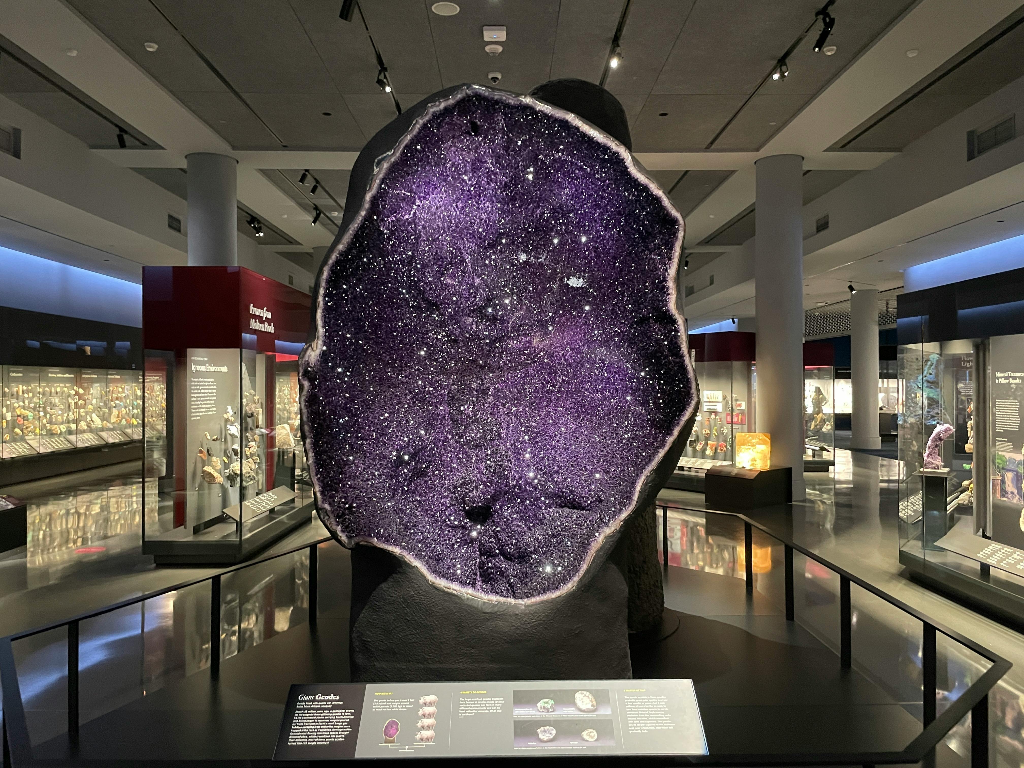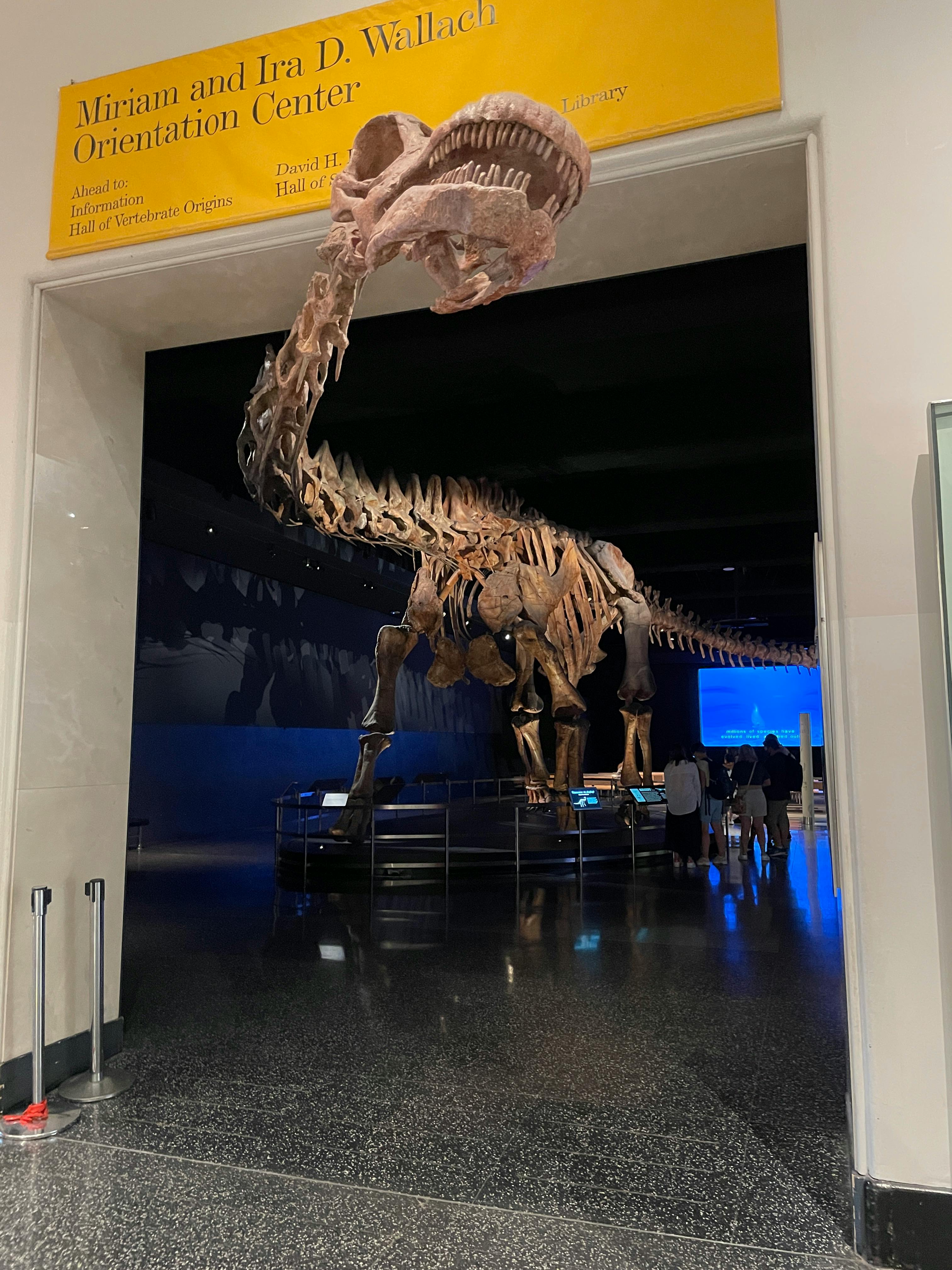 AMNHには見どころがたくさんあります。目を見張るような恐竜コレクションに加え、素晴らしいプラネタリウムや、1階の「ホール・オブ・オーシャンライフ」の天井から吊り下げられた長さ28メートル越えのシロナガスクジラの模型もあります。これは実際の標本ではありませんが、世界最大の動物の巨大さを実感できます。それに、本物のクジラよりもずっとましな匂いです!