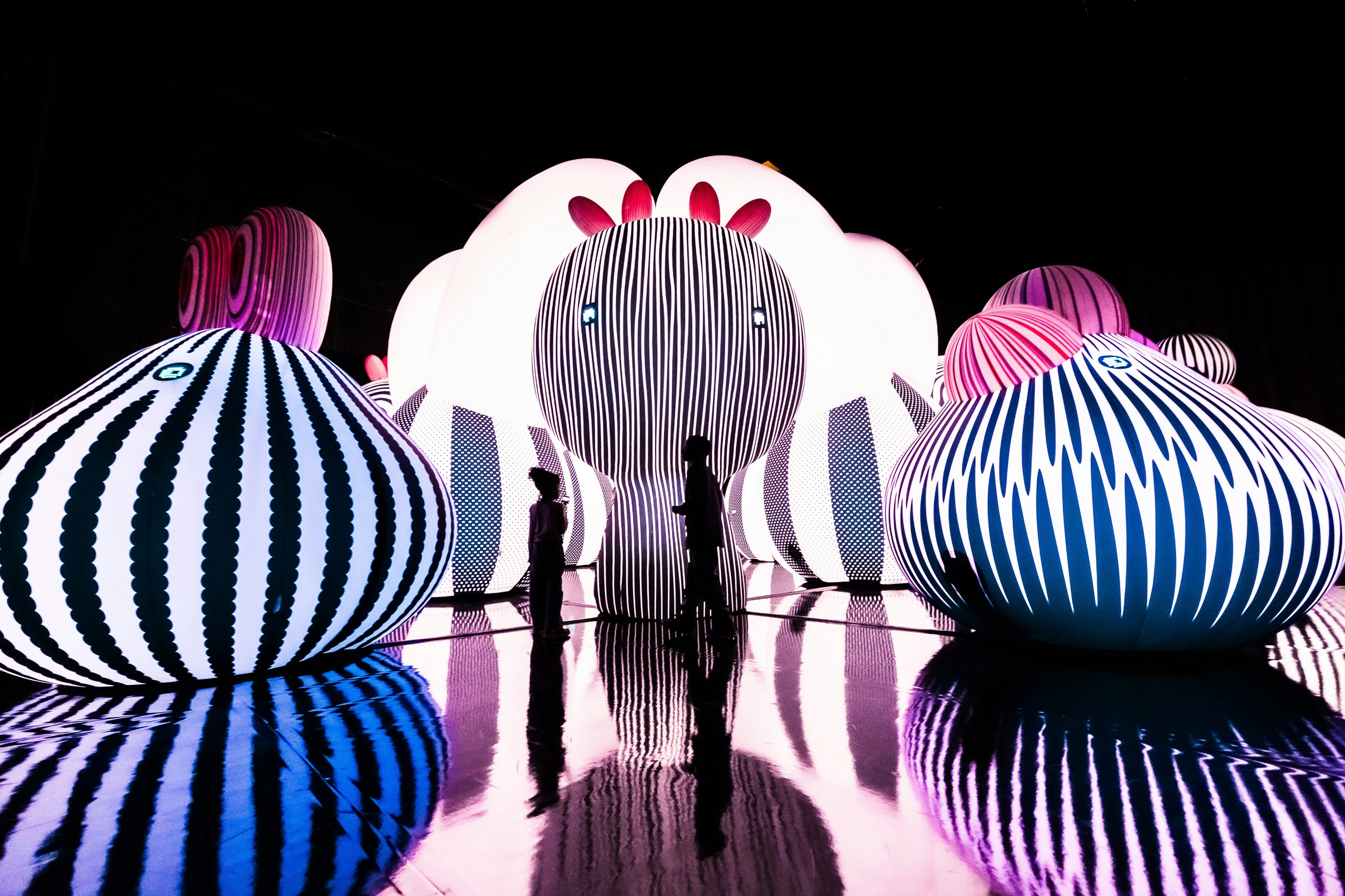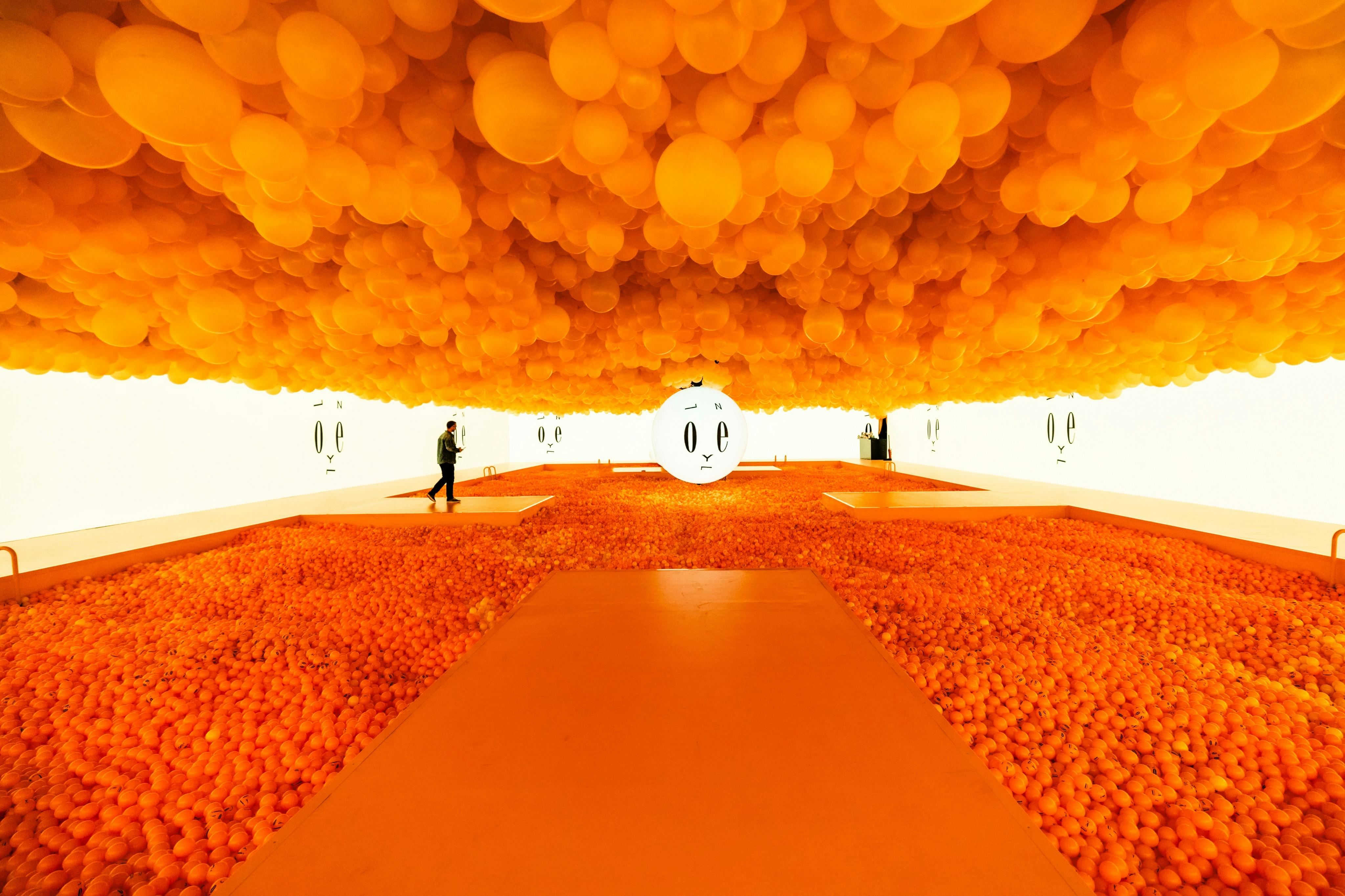 다채로운 풍선 전시를 감상하세요. 인터랙티브 아트 설치에 참여하세요.