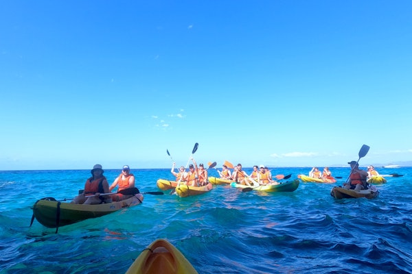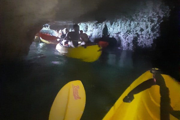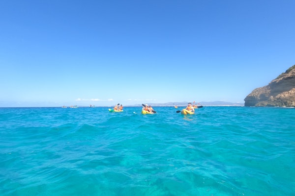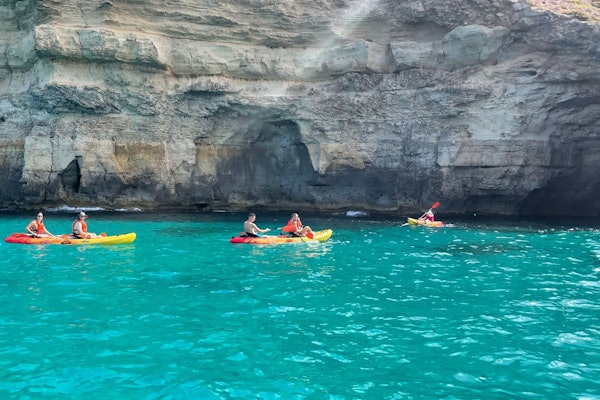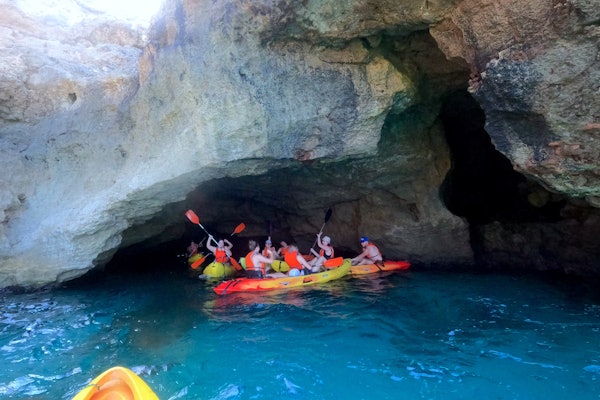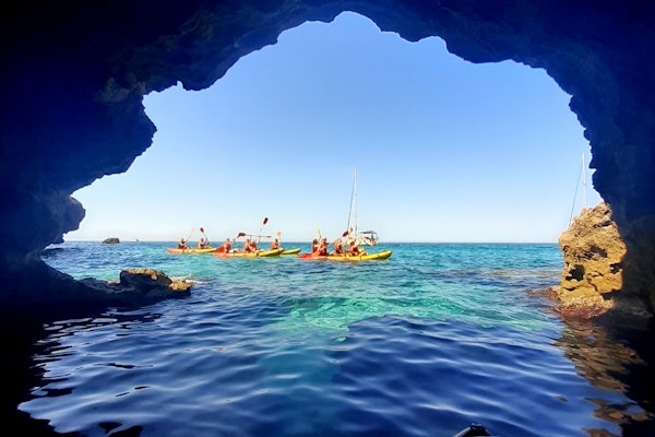 흥미진진한 카약 어드벤처를 즐기며 마요르카 남부의 맑은 바다를 항해하고 길을 따라 자연 동굴을 탐험하세요.