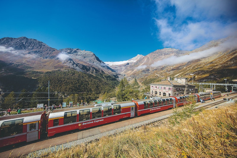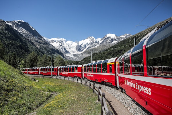 베르니나 익스프레스에서 알프스의 아름다운 전망을 감상하세요